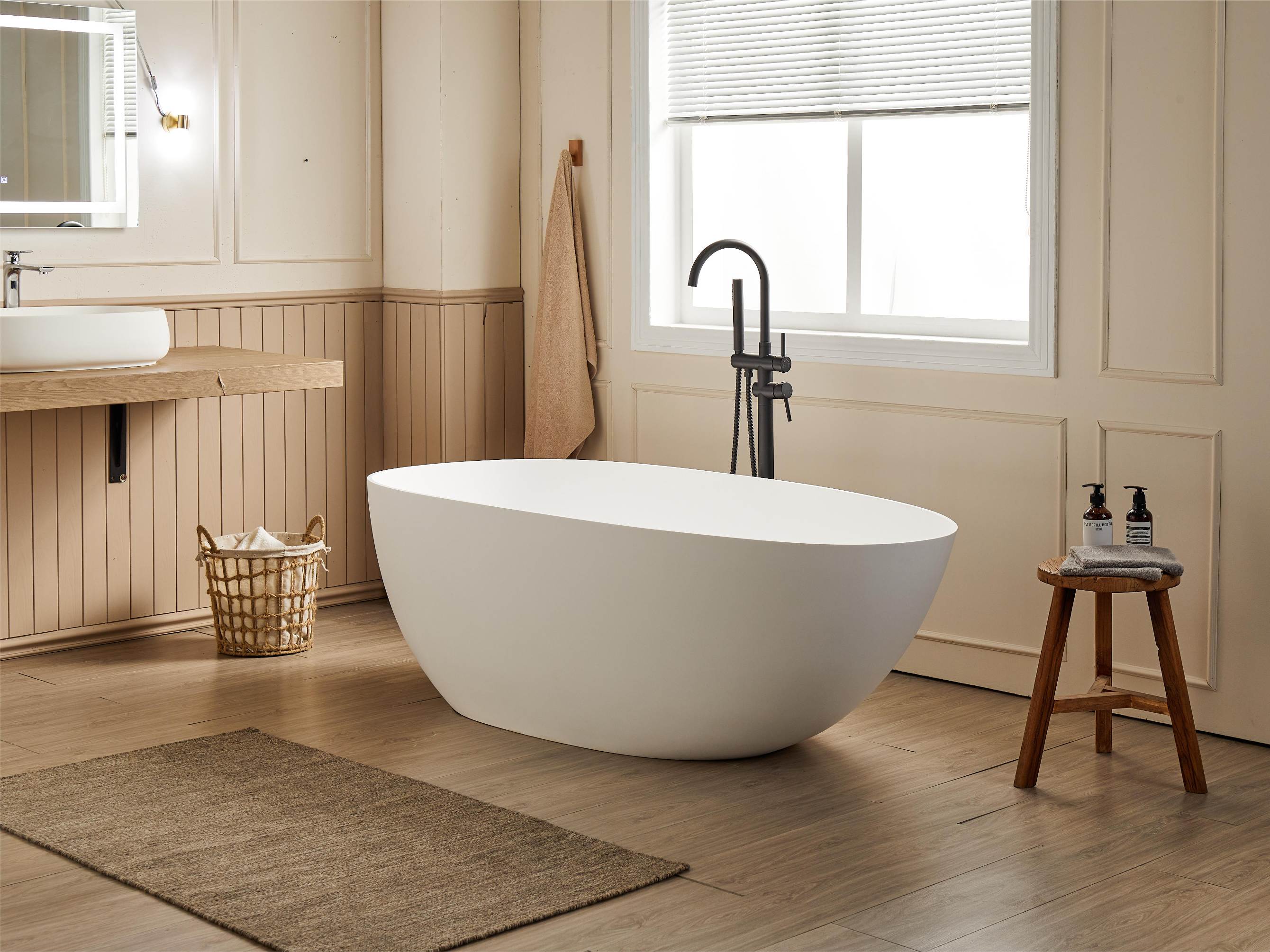 - Durability & Scratch Resistance: Made from a blend of resin, minerals, and acrylic, solid surface tubs are highly durable and resistant to scratches, making them suitable for long-term use. They are also non-porous, preventing mold and bacteria growth.